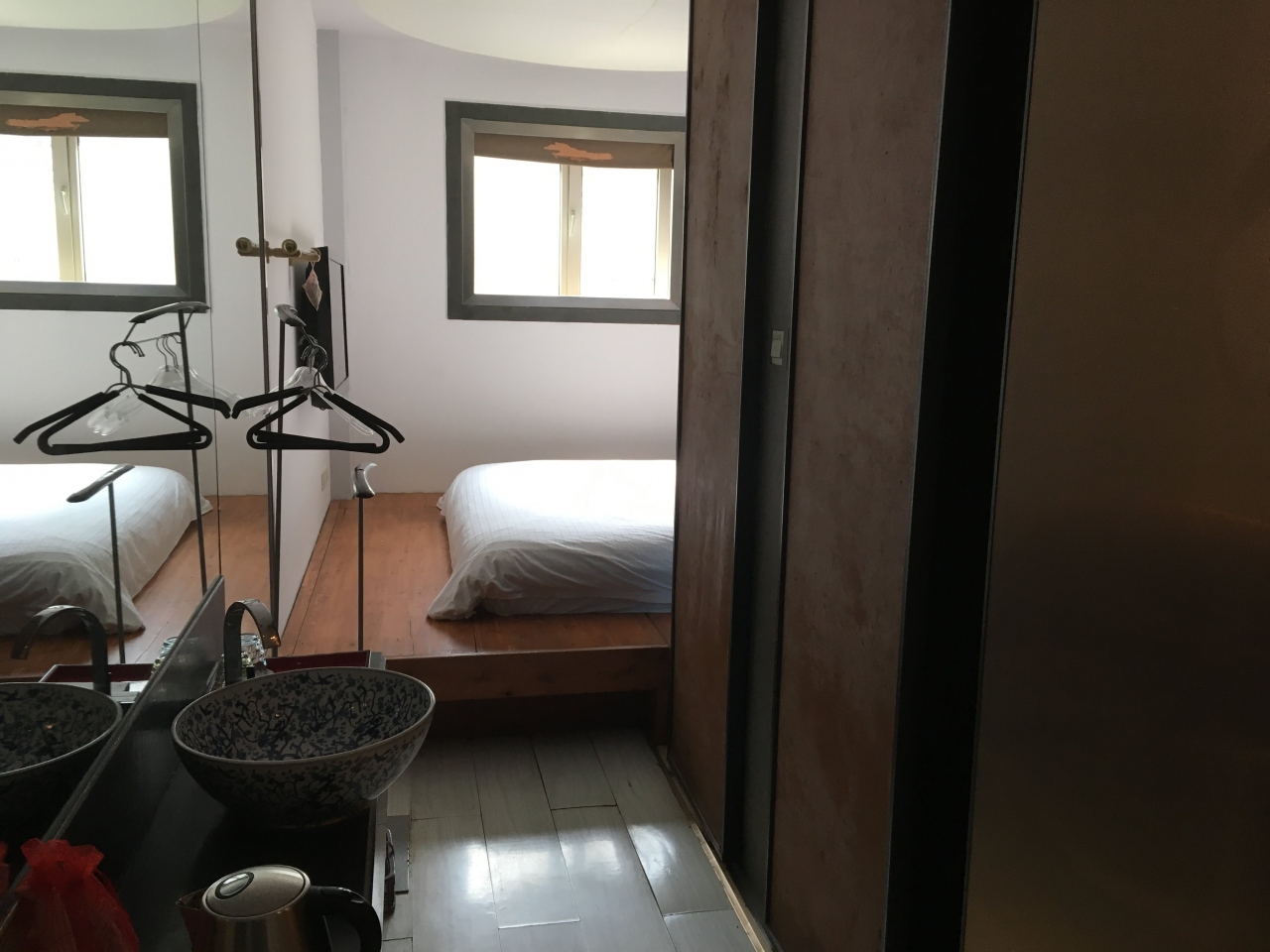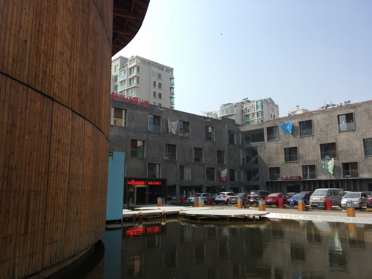 主だった観光スポットからはやや離れていますが、いくつかのホテル予約サイトで「びっくりするほど親切!」「スタッフは常に笑顔でいっぱい」と絶賛レビューを見かけたので泊まってみました。空港からはバスで海洋地質所という停留所に向かい、数分の場所です。ただ大通りからは奥まった場所にあるので事前に地図でご確認を。独特な円形の低層階の建物の前には、いつも大勢の金魚がハングリー精神むき出して餌を待ち焦がれています。館内にもその延長のように水路が設けられているものの、滞留しているようで水質には危うさを感じます。肝心のフロントの皆さん、疲れがピークだったのか滞在期間中、一人の笑顔も見る事はなく。部屋はショートケーキというかバームクーヘンのような形で、何部屋かは事務所や店舗として貸し出している様子。実に不思議な空間でした。