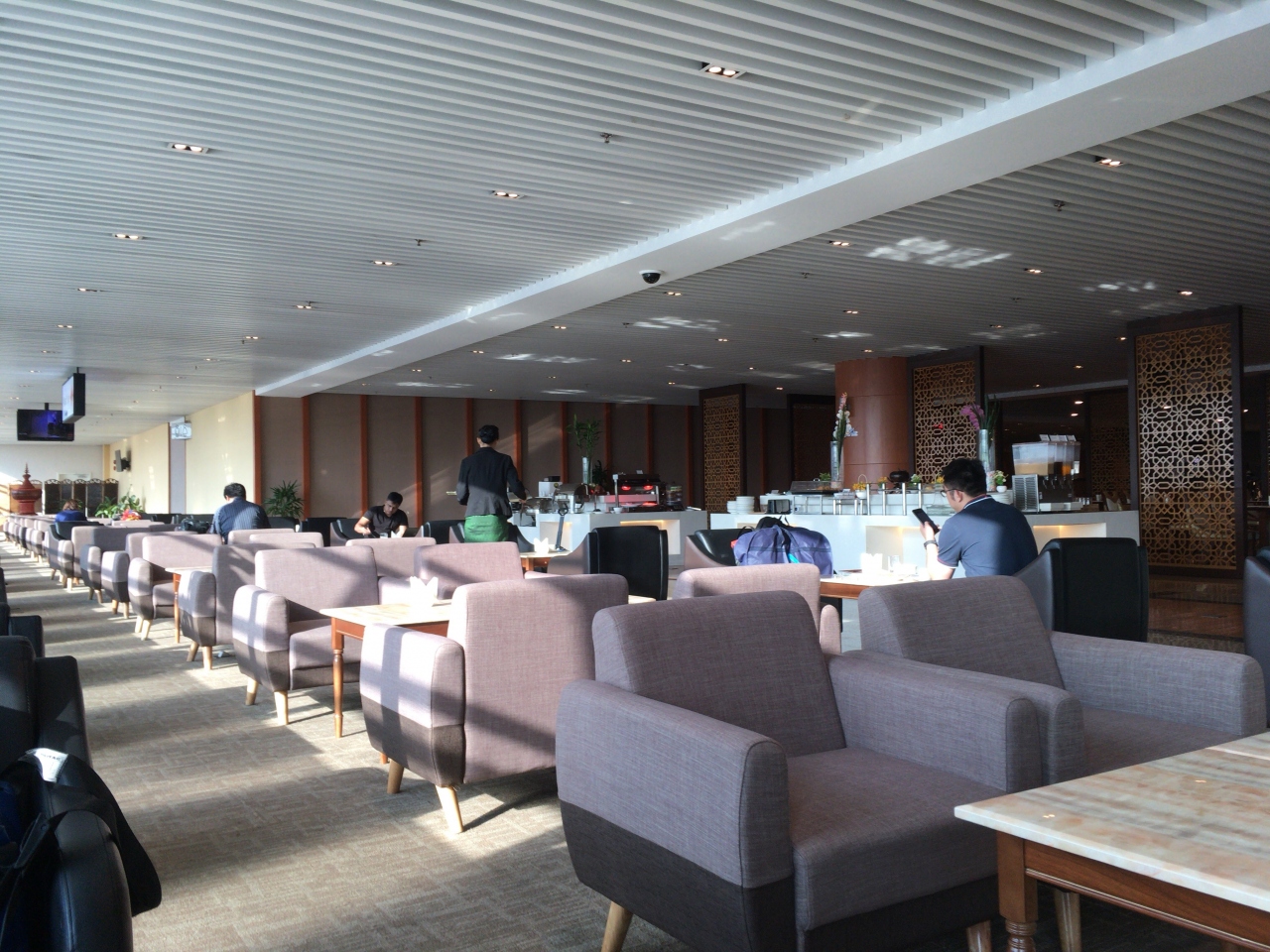 ヤンゴン市街地からタクシーで1時間弱と、少々アクセスが厄介ではありますが、ゴールデンロック訪問の起点となるキンプン行きを始め、国内各所と結ぶ長距離バスのターミナル(アウンミンガラーバスターミナル)は空港から程近く。空港の建物自体はここ最近改装されたようで新築同然ピカピカです。プライオリティパスで利用できるミンガラースカイラウンジはやたら広大でした。生ビールも完備、ヒコーキも間近に見えて快適です。