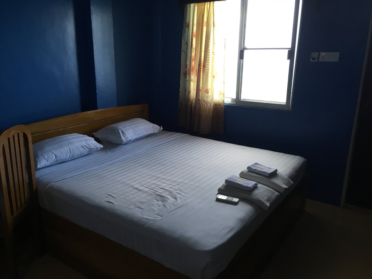 ゴールデンロックを朝な夕な堪能するなら抜群の立地です。境内までも徒歩圏で、思い立ったらすぐゴールデンロックを愛でに向かえます。改装をしたせいか、客室も思いのほか快適。以前はフロント周辺でしかWi-Fiが使えなかったようですが、今では結構離れた客室でも繋がりました。かなり重いし、時折宿全体が停電するので、決して安定はしていませんが。特筆すべきは、ビュッフェスタイルの大食堂。宿泊客以外も大勢訪ねて大盛況です。ここには恐らく山頂で唯一?ビールの提供があり、敷地内でしか飲めないと縛りはありますが、参拝帰りで汗をかいた後にも堂々とミャンマービールを味わえます。宿のベランダから一望できる雲と緑の絶景を肴に、実に美味でした。