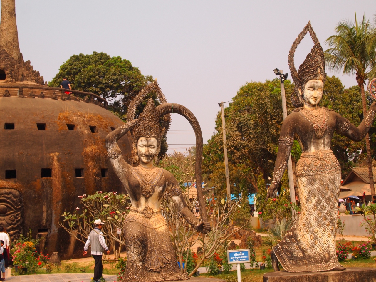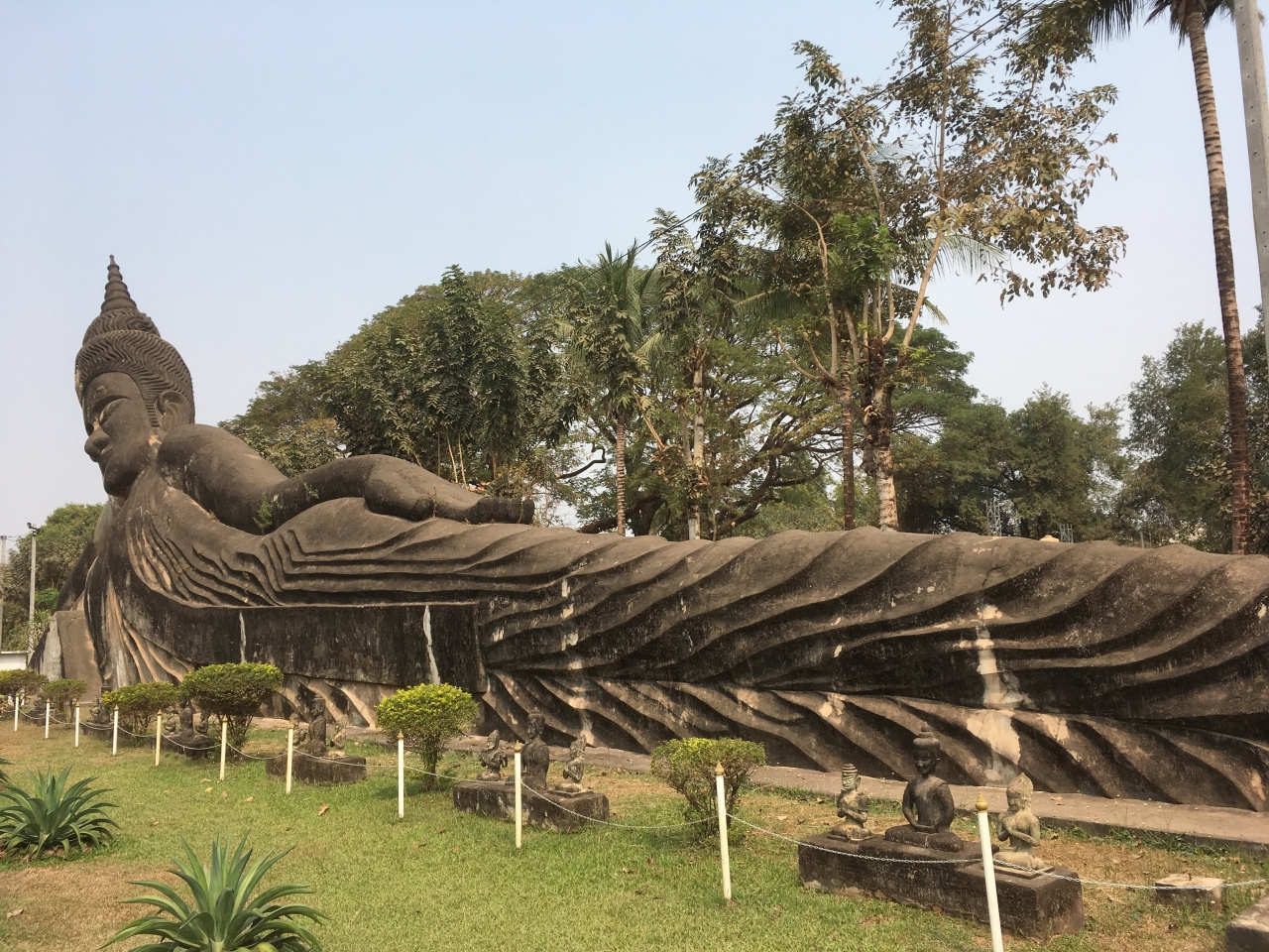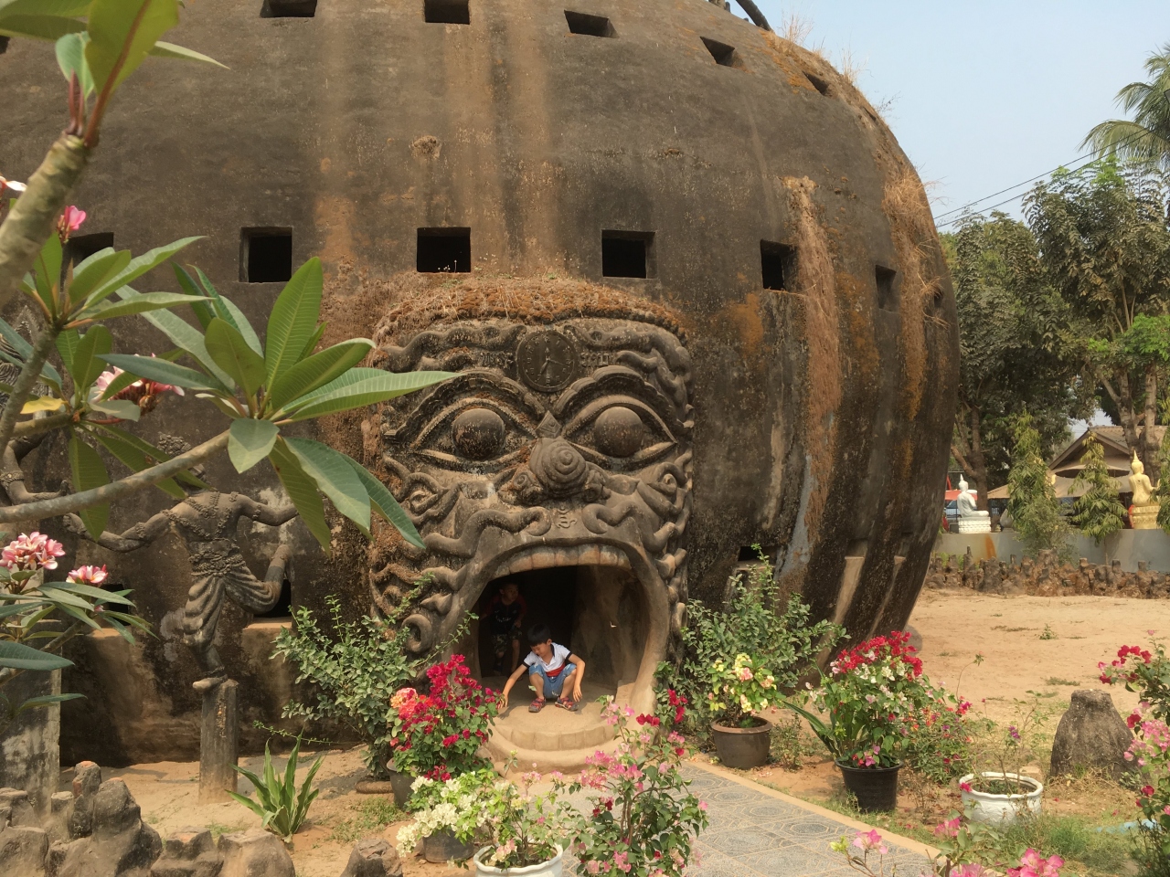 もはや信仰とか敬虔みたいな次元を超えた混沌ワールドが展開しています。タラートサオからバスで1時間ほど、辺りには他に特段見所もないのに、ブッダパーク目当てに大勢の観光客が殺到します。敷地は決して広くないものの、所せましと仏像やヒンズー教の神々の像がひしめき合い、カオス!としか言いようがありません。思い思いのポーズを決める像の数々に「一体なぜこんな格好を…?」と想像しながら歩けば平気で1時間か2時間かかります。漏れなくインスタ映えするスポットでしょうが、そんなのしてなくったって思う存分楽しめます。退屈退屈と言われるビエンチャンながら、ここはマストビジット!