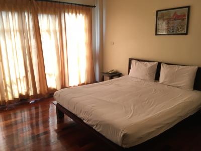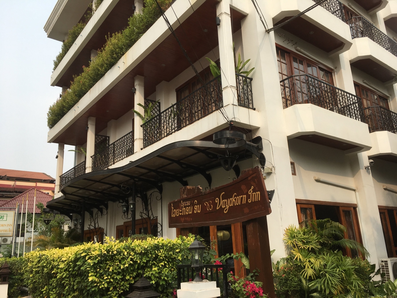 ビエンチャンの小さな繁華街のど真ん中という好立地です。メコンの夕陽を見に行くにも屋台ストリートやカフェを巡るにも便利でした。バスターミナルまでも大きな荷物さえなければ歩けなくもありません。レトロでどっしりとした構えの宿で、いつも20代の若いスタッフが応じてくれます。英語も達者。靴を脱いで客室へあがるシステムは、どうやら欧米人にはしっくり来ないようで、ぶつぶつ文句を言ってましたが、日本人なら気にならないかと思います。ただし掃除が行き届いていて、床はワックスで滑ります。靴下で歩き回った後、再び靴を履くと足の裏がツルツルして違和感がありました。部屋からの眺めは特筆すべきこともありませんが、密集した町中の割には静かです。無料のWi-Fiはとにかく遅いし、頻繁に途切れます。ラオスは大体どこもそんな感じです。