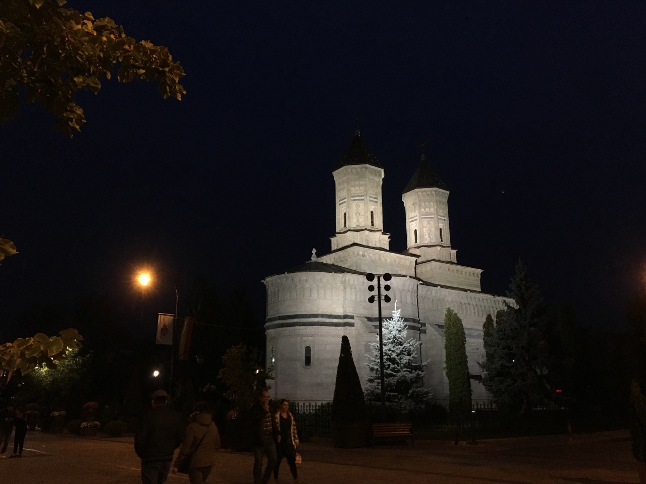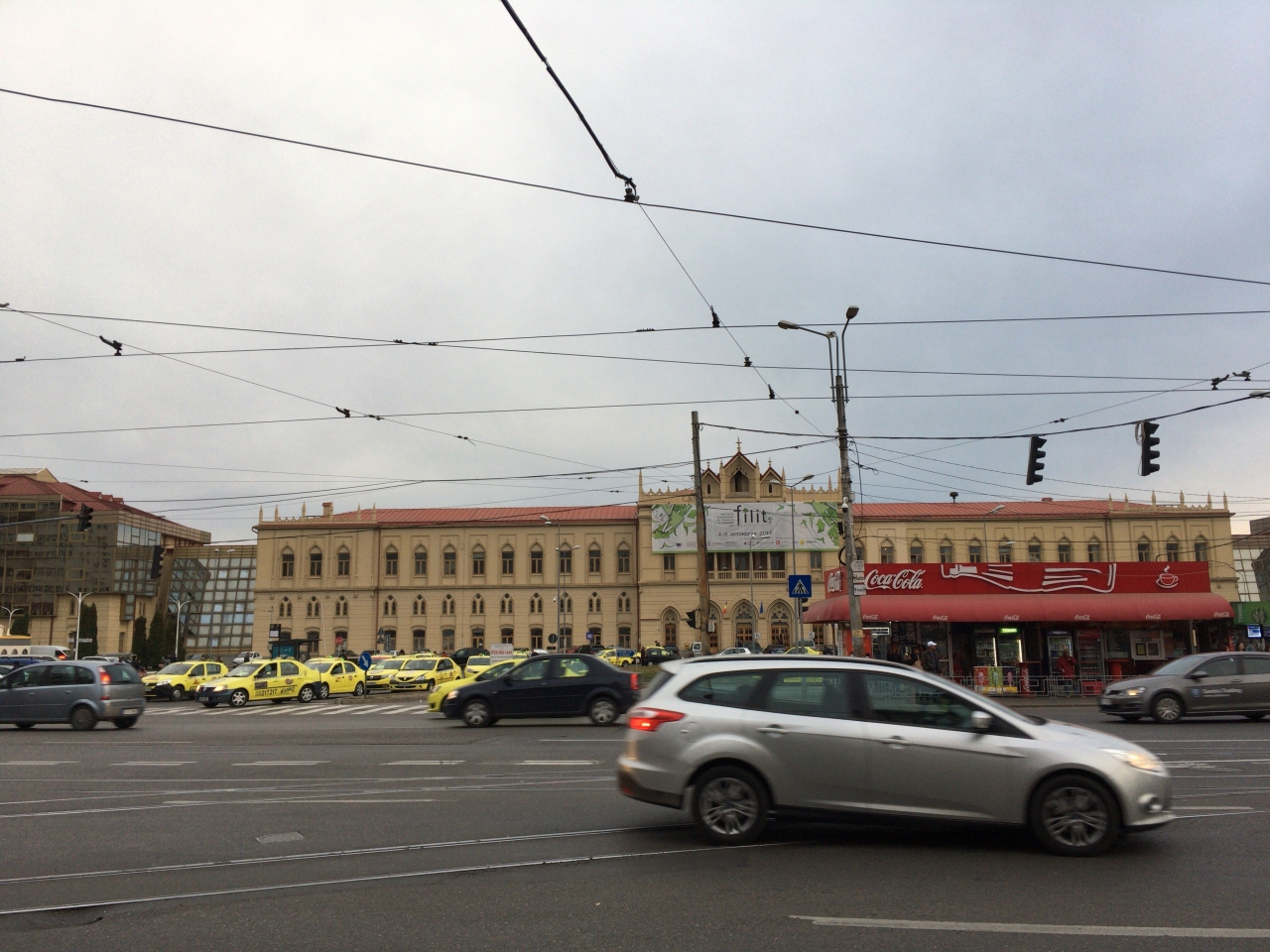 ヤシの街の中心街、お手頃価格から高級クラスのホテルまで林立するエリアのど真ん中が統一広場です。もちろん首都ブカレストの統一広場とは比べ物にならないくらいコンパクト。それでも路面電車が頻繁に行き交い、客待ちタクシーも常に待機していて、人通りも絶えません。文化宮殿や教会群など古都の見所を巡る起点としても便利な場所でした。