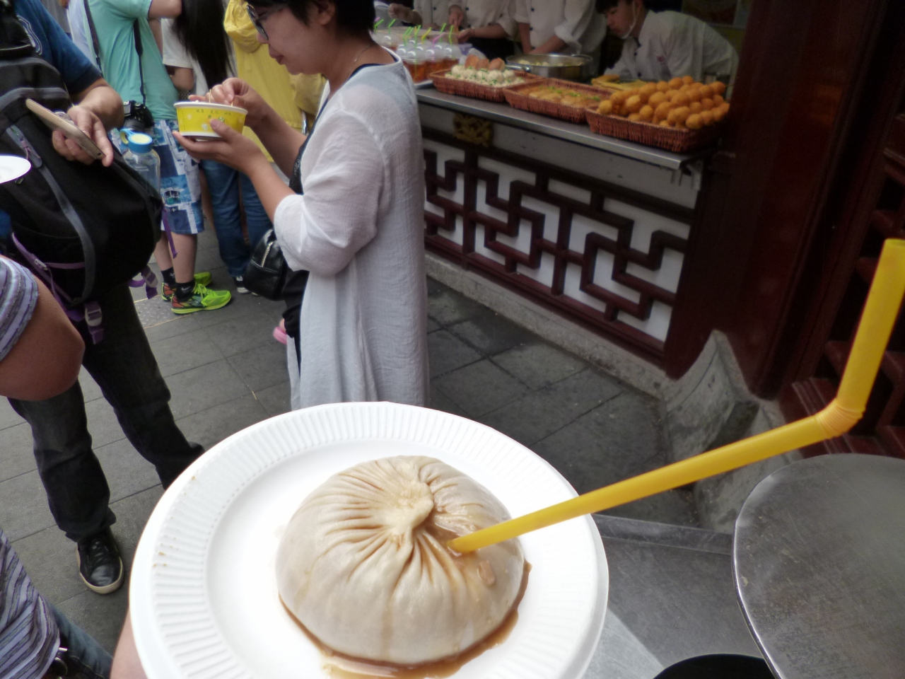 豫園界隈で殺人的な長蛇の列が出来ているため迷うことはなさそうです。そこら中で、プニョンとした肉まんっぽいフォルムの物体にストローをさしてすする人たちが。看板商品のソレを頼んでみましたが、確かに平均点以上の美味しさではあるものの、あの大行列で疲弊してまで食べるものかは意見が分かれそうです。