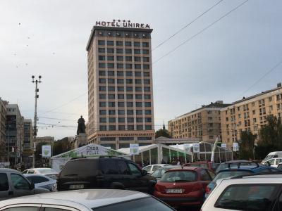 地図上では統一広場から徒歩圏に見えましたが、あいにくの雨の中スーツケースを転がして向かうのは少々疲れました。ホテル自体は無愛想な外観と違って、親切でフレンドリーな若いスタッフの皆さん、スタイリッシュな客室、ブカレストの街並みを一望できる大きな窓、快適なWi-Fiとコストパフォーマンスも良かったです。但し周辺には飲食店どころかスーパーもコンビニすらないので、買い出しは町中で。
