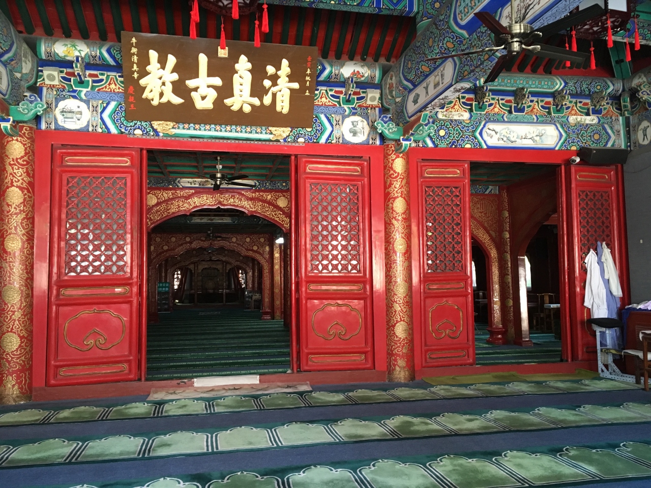 牛街のシンボル的存在である、北京最古のイスラム寺院。中東などでよく見かける、巨大なミナレット(尖塔)を備えた大理石造りの豪華モスクとは異なり、いわゆる日本の仏教寺院に通じる外観です。しかし礼拝スペースには、ちゃんとメッカに向けてお祈りするための一人分ずつの絨毯が敷き詰められていました。行き交うイスラム教徒の皆さんも非常に穏やかでにこやかに出迎えてくれました。とてもピースフルな境内でした。