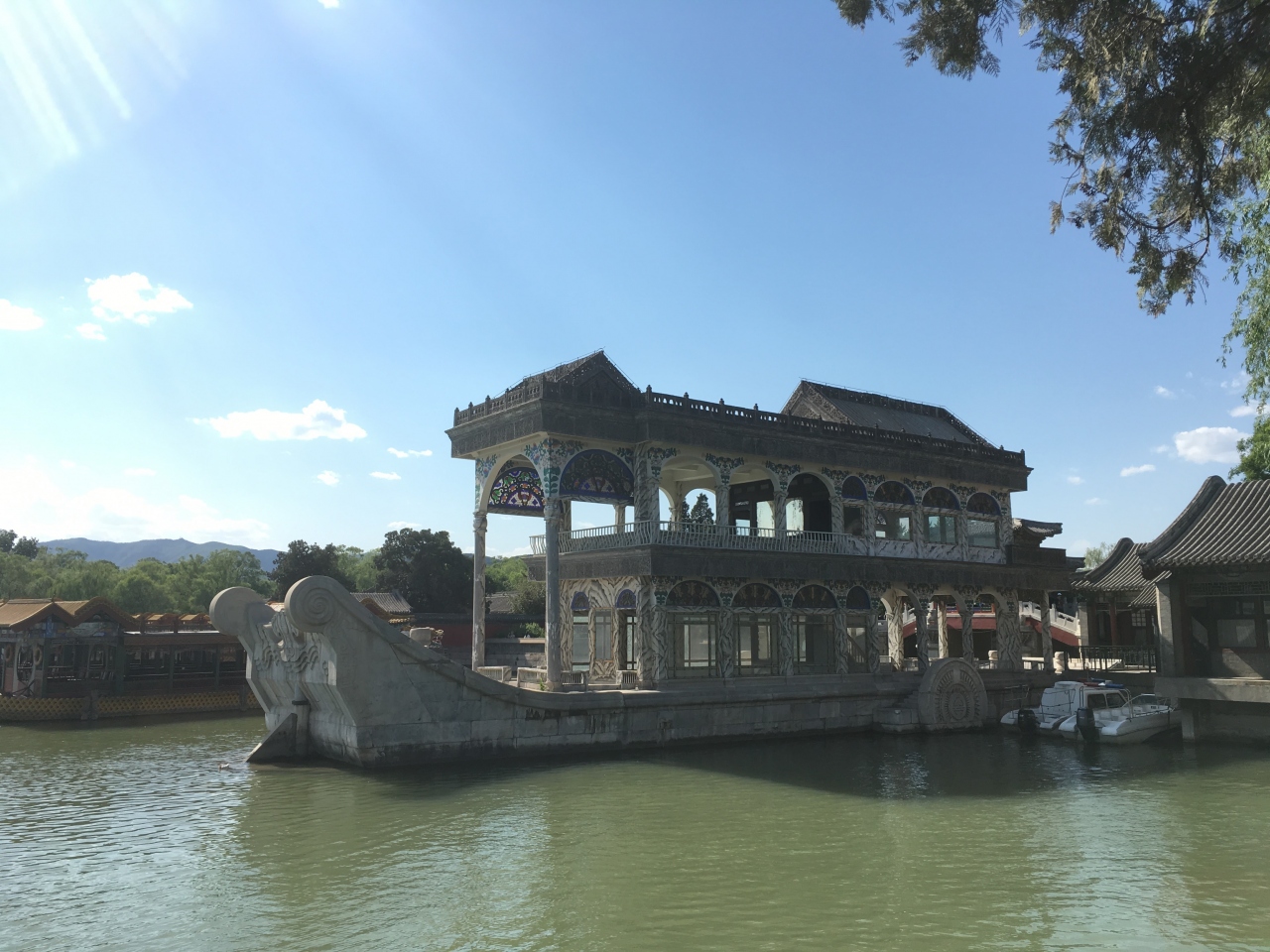 世界遺産の超巨大庭園は、スケールが段違い。侮ってゆっくり昼から出かけたために、すべてを巡れる共通券は午後2時で販売終了で、限られたエリアだけ散策しました。別にいけずして14時区切りにしているのではなく、そこから全てを回ろうにも時間切れは一目瞭然、とにかく果てが見えないほどの大きさでした。ただ、あまりに広すぎるせいか、割と地元の皆さんも早々に飽きたか、そこら中に座り込んで寛いだり昼寝をしたり。昆明湖周辺の通路は幅が狭い箇所も多く、対面通行は常に大渋滞でした。のんびり周遊したい方は早朝のオープンと同時に訪ねた方が良さそうです。
