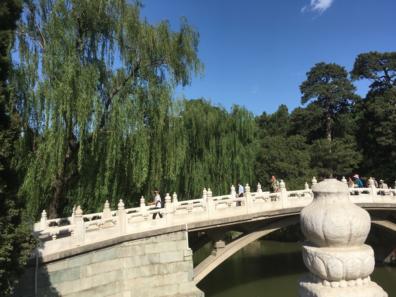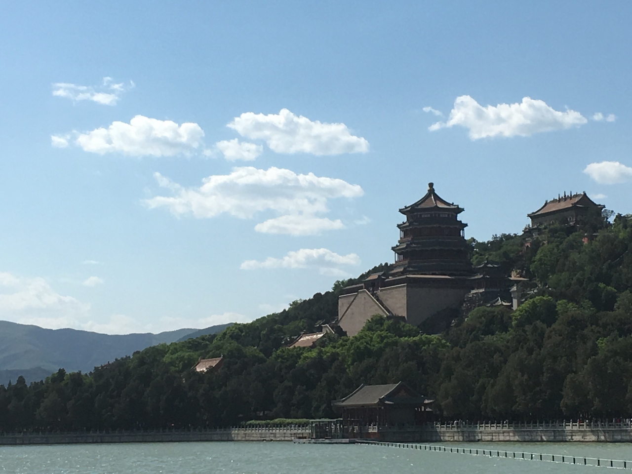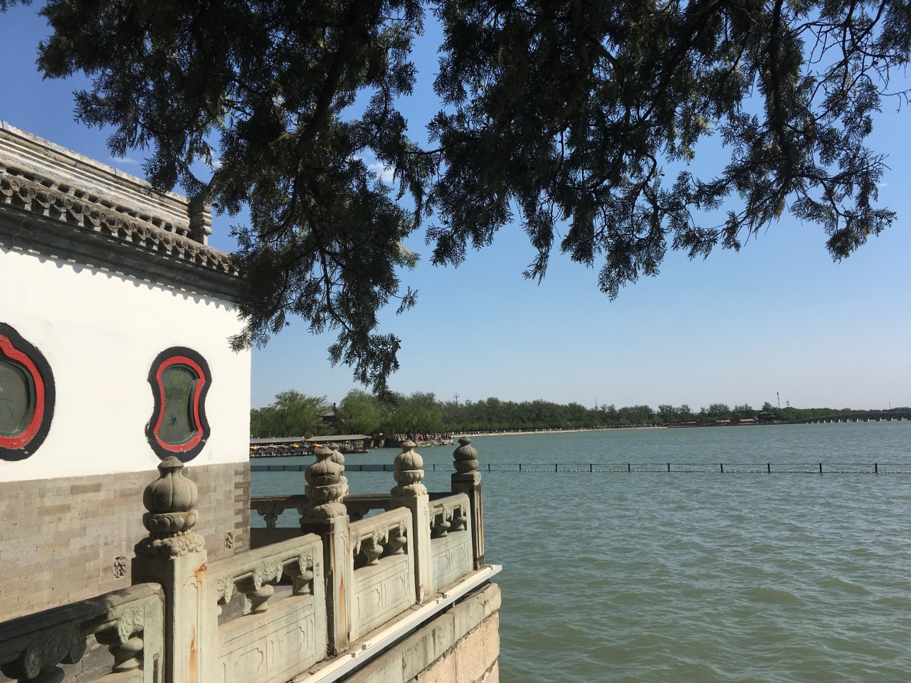 超巨大庭園、世界遺産の頤和園の敷地で大半を占めるのがこちらの湖です。東側の正門から入って最初の宮殿区の畔から、頤和園のシンボルでもある万寿山の仏香閣と共に望む湖や、あるいは更に歩を進めて長廊の中を通りながら、梁に掲げられた絵画の向こうに広がる湖とか、角度によって彩り豊かな表情を見せてくれます。このところの北京ではなかなか容易ではありませんが、どうせなら日の光をいっぱいに浴びて、空の青を映しこむような天気の日に訪ねたいところです。