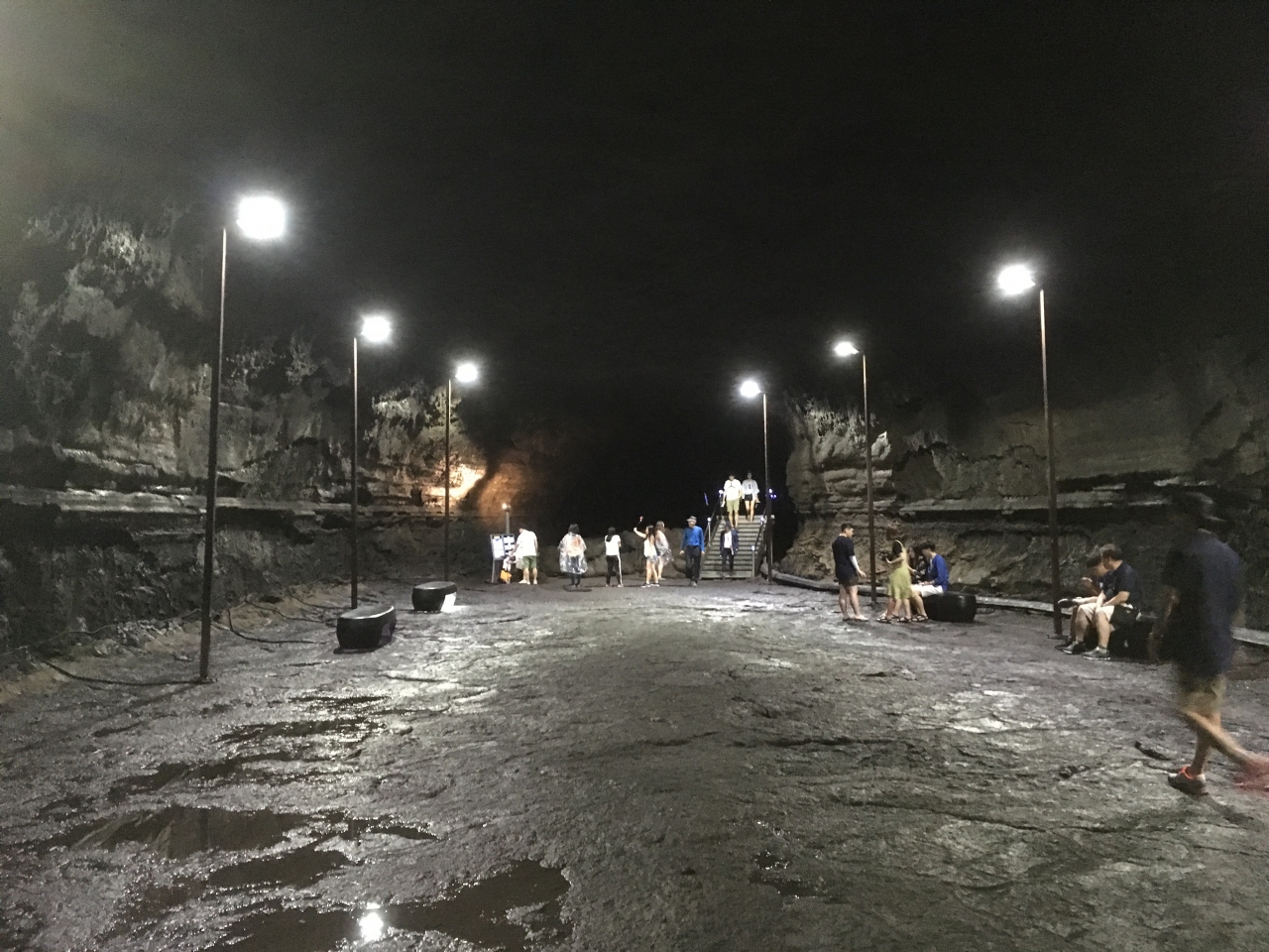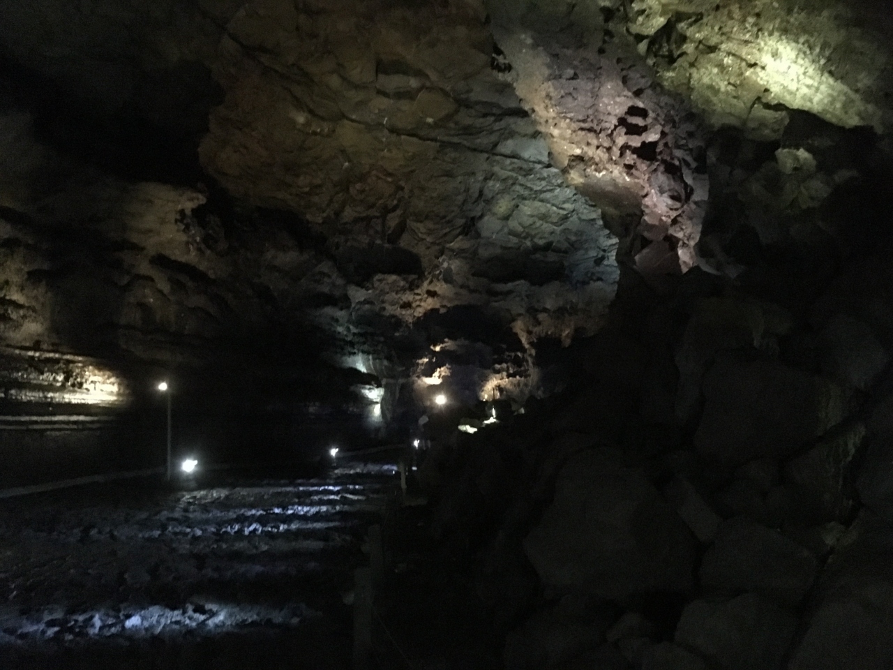 蒸し蒸しの真夏日だったのに、少し中へ歩みを進めるだけであっという間に鳥肌が立つほどの冷え込みです。特段寒がりでもない自分が、半そででは凍える冷たさに、体を温めるべく思わず早歩きに。足元が見えないような暗がりもあるのに、所々水たまりがあるためくれぐれも足元にご注意を。当然ながら洞窟内部にはトイレがないので、寒さで近くなりそうな人は入り口そばで済ませて出陣しましょう。