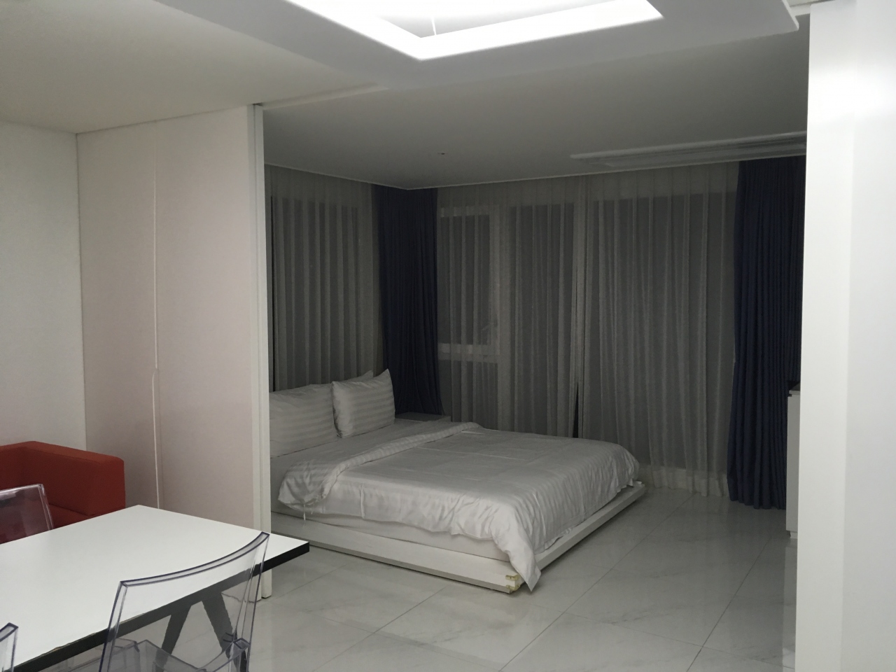 西帰浦の都心にあって、付近には遅くまで賑わう飲食店街もあります。商店街も徒歩圏です。恐らく元々はリゾートマンションだったのではないかと思しきレイアウトです。室内は真っ白な大理石調でまとめられ、リビングに寝室とやたらめったら広いです。窓からは海も見えましたが、すぐ隣の空き地で工事をしているのも丸見えでした。ホテルの前にはコンビニも二軒あります。駐車場もスペースに余裕がありました。