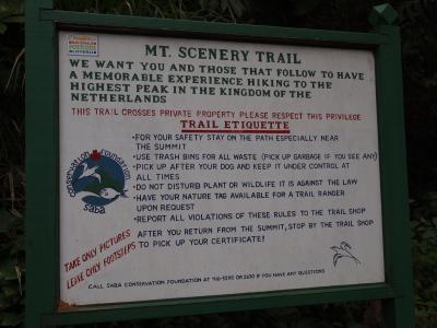 877メートルにしてオランダ領土の最高峰です。トレッキング好きな欧米人旅行者には人気、と聞いたものの、この日山道で出逢ったのは2人だけ・・・一人では少々心細いかも。とはいえ遭難するようなルートでなく、雨上がりはちょっとぬかるんでて所々歩き辛かったけれども、ちゃんと階段らしきものが整備され、片道1時間半は適度なハイキング気分でしょうか。とか言う自分は途中で時間きれで引き返したわけですが、登山口の看板によると何か所も絶景スポットがある模様。