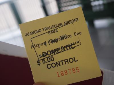 セントマーチンからの日帰りトレッキングも楽しいサバ島。小さな公民館みたいな空港で何もかも緩い感じではありますが、島を出る時は入る時にはなかった空港使用料が必要です。ほんの5ドル。小さなロビーなので見渡せば、支払うカウンターはすぐ分かるはず。払った証明の半券をパスポートと共に見せて、出国です。