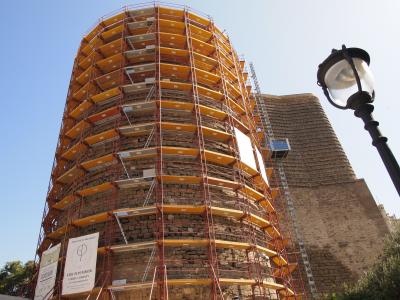 真夏の休日の朝一番に訪ねたせいか、旧市街では旅行者はおろか地元の人の姿もほとんど見かけませんでした。結構アップダウンもあってコンパクトながら探検しがいのある街並みです。宮殿も意外とこじんまりとしていて、しかも割と奥まった所に位置するのでミナレット(尖塔)をどうぞ目印に。乙女の塔は2012年8月時点ではすっぽり工事用の幕に覆われ修復作業中でしたが、入場料を支払えば塔内(大した展示はナシ)及び頂上の展望台までのぼれます。カスピ海から新旧市街までぐるっと絶景。