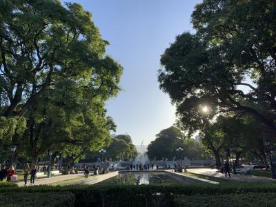 少し歩けば比較的大きな公園に出くわすメンドーサの中心市街地にあって、もっとも広い独立広場。中央にある立派な噴水が目印です。日中は屋台が出ていたり、学生や親子連れで賑わいピースフル。MENDOZAの巨大アルファベットのモニュメントも広場の一角にあります。