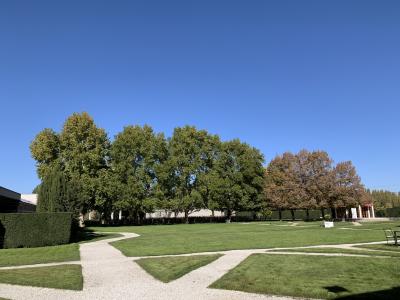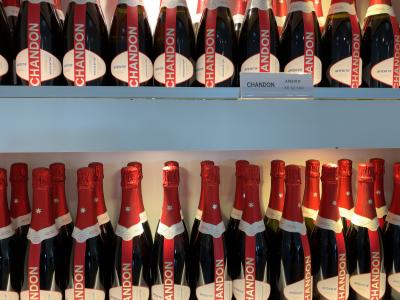 効率よくワイナリーを巡ろうと、数社あるツアー会社の中から程よい大人数で回れて、かつある程度自分でアレンジも効くBus Vitivinicola(歩き方にも掲載あり)社のツアーに参加したところ、ハイライトとしてシャンドンも訪問できました。以前にオーストラリアのヤラバレーでもシャンドンを訪ねた事がありましたが、ここもやっぱりお洒落。ボトルの陳列から見学コースのデザイン、広大な庭や試飲スペースのしつらえまで洗練されています。