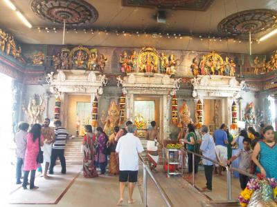 リトルインディアにあるヒンドゥー教の寺院です。インドと言っても、この寺院はインド北部のデリーにはなく、インド南部のチェンナイなどにある寺院と同じです。マレーシアにも同じような寺院がありました。人が多くて、混んでいて、ジャスミンかなにかの匂いが充満しています。
