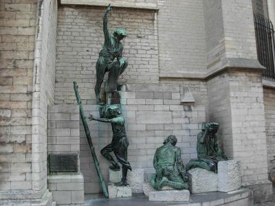中央に建つ尖塔の両脇に高くそびえる塔をもつ教会です。15世紀からの歴史あり、ステンドグラスで有名です。前庭のベンチで本を読んでくつろぐ市民の憩いの場のように見えました。ブリュッセル中央駅直ぐ傍の徒歩圏にあるので、是非、中に入って、芸術的なステンドグラス、彫刻、絵画を堪能することをお勧めします。