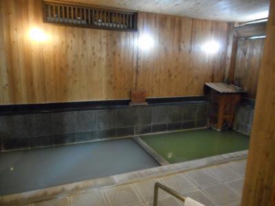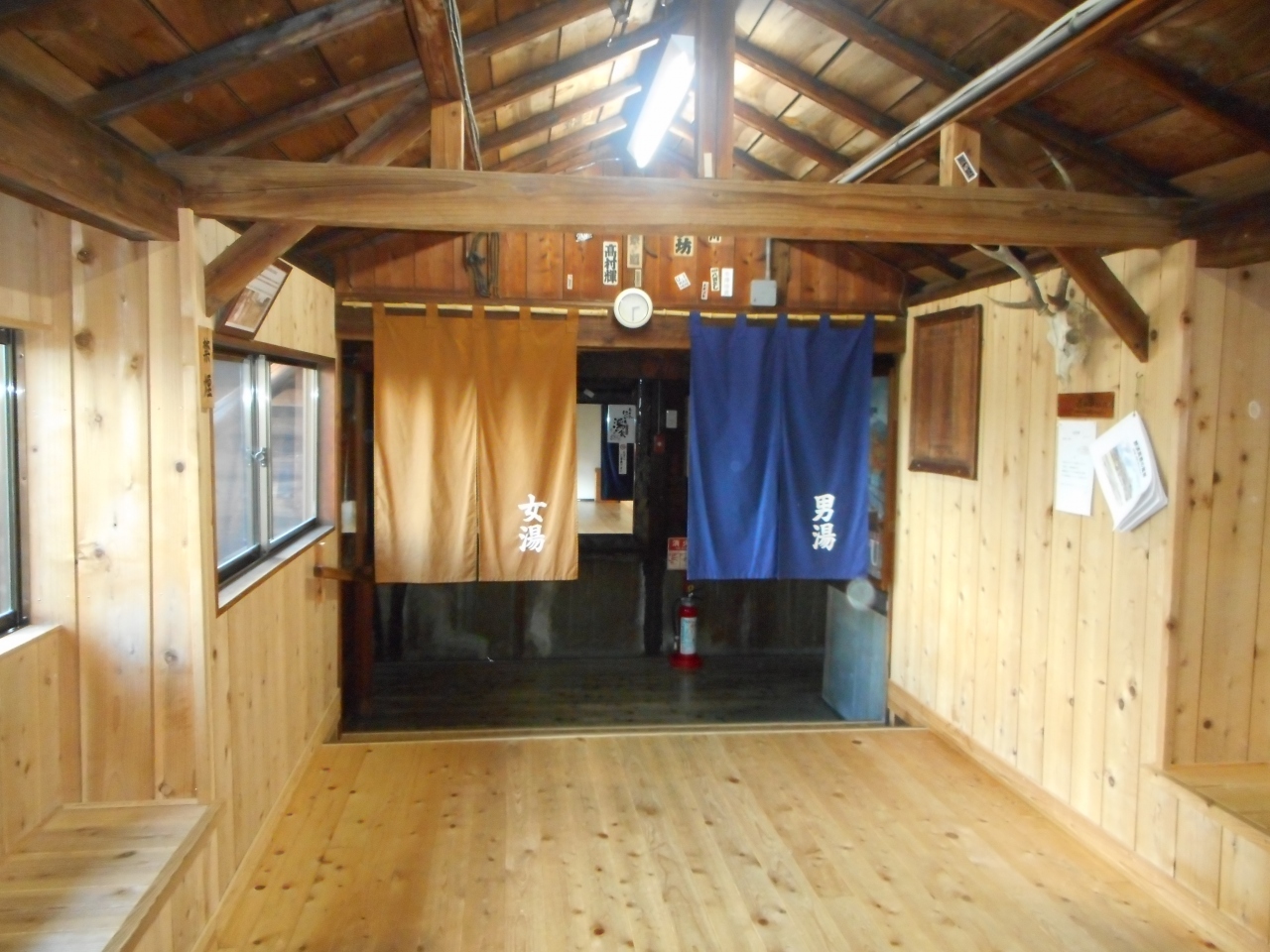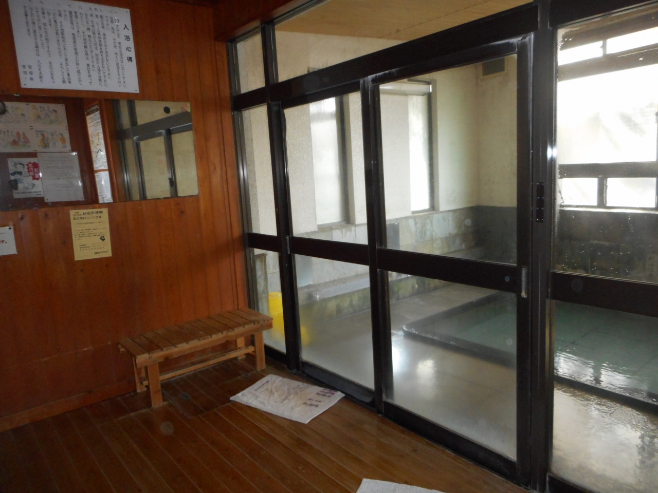 浴室は入り口のドアからは想像できない雰囲気の良さです。中は天井が高く全体的に木で出来ていて脱衣場一体型が共同湯という感じで気に入りましたが 古いので改装するそうです。しばらくお休みすると張り紙がしてありました。