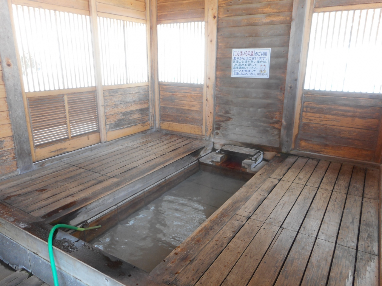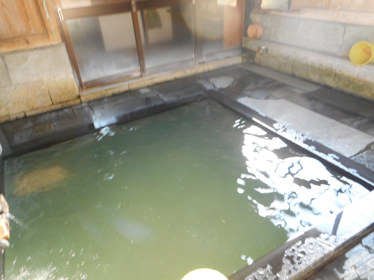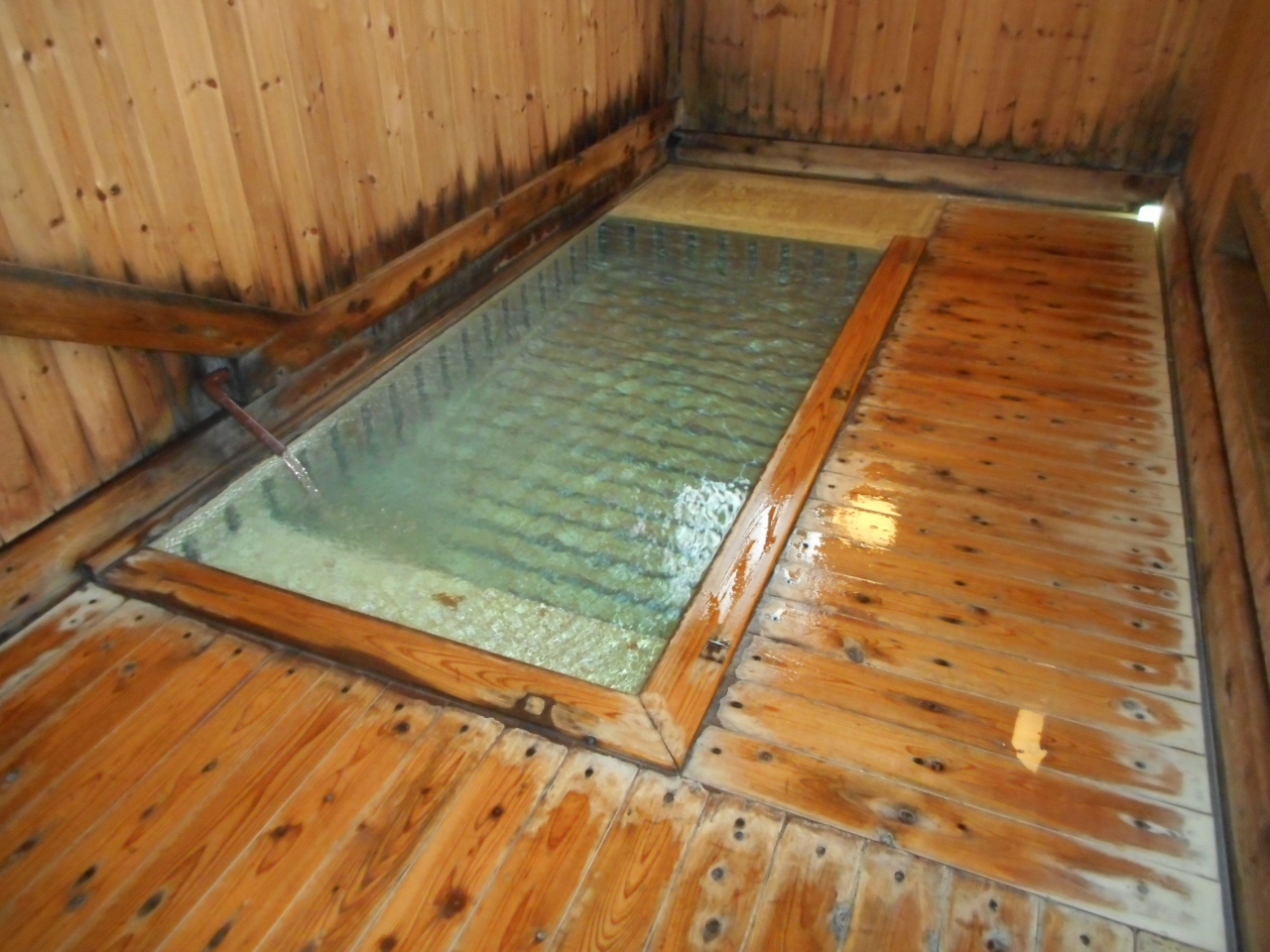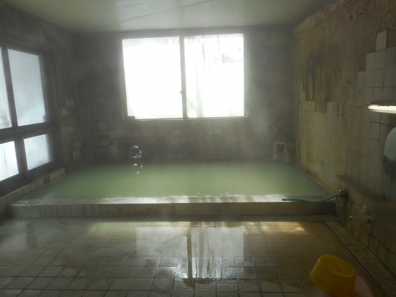 強酸性の硫黄泉。高温の源泉がすのこ状の底から掛け流され 豊富な成分が浴槽に着いていてジャバジャバするとお湯が真っ白になります。湯温の調節は常時ホースから流れる水でされているので (止められる作りではなく止めるときっと熱くて入れない)源泉かけ流しなんだけど加水されていると言う共同湯でした。