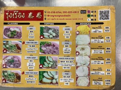 Rung Rueang Pork Noodle メニュー