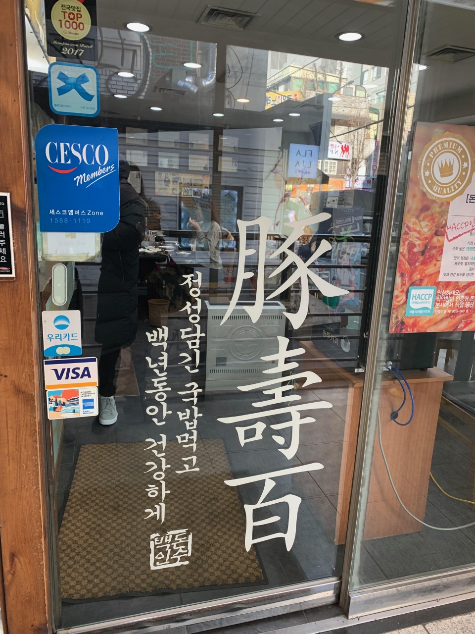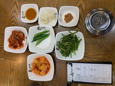 だいたいみんなテジクッパを注文していますが、人数多めのグループはマンドゥやスユク(ゆで豚)を頼んでいました。