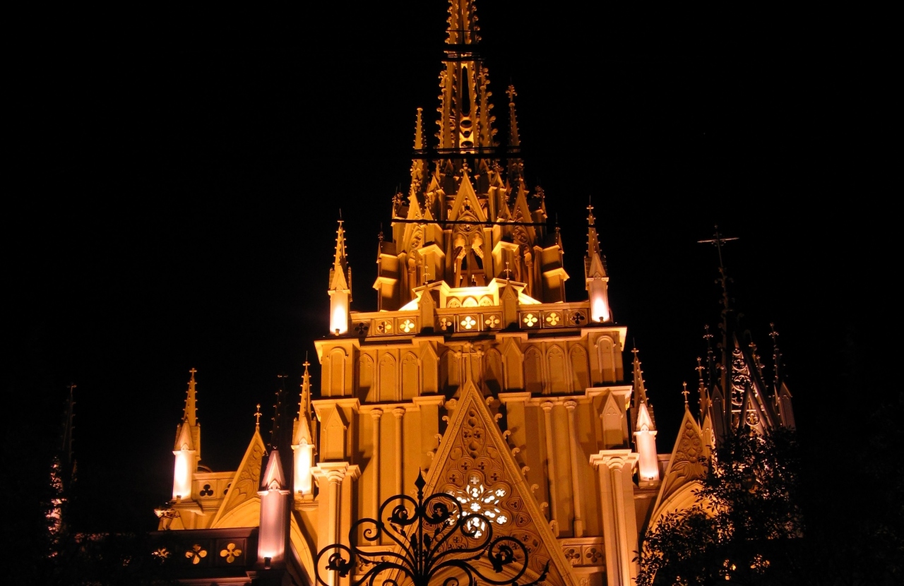 表参道にある教会で、結婚式場として使用されている場所です。路地の一角に突然あらわれるので、最初見たときは驚きました。昼も夜もとてもきれいで、とくに夜にライトアップされた姿は美しいです。教会全体がライトアップされるので、幻想的でまるでヨーロッパの建築物のようにきれいです。