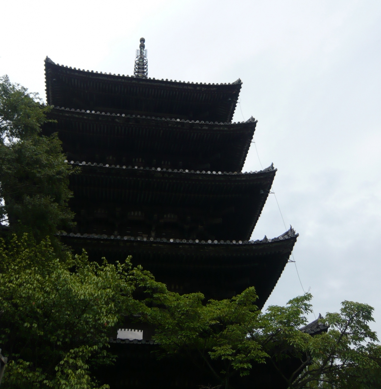 祇園を散策していると大きな塔が見えてきました。京都の木造建築の家屋とよくあい、きれいな景色でした。現代でも、昔の時代を感じることのできる景色を眺められて感動しました。こちらの塔は東山地区の街並みとよく馴染んでいて、美しかったです。