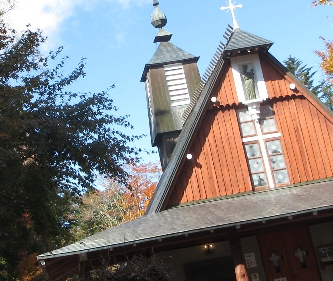 旧軽井沢銀座の裏通りにあり、結婚式などが行われていなければ自由に見学することのできる教会です。木造づくりのシンプルな教会で、中へ入ると大変静かで静寂な時間が流れていました。建物の内部も木造づくりでした。目立つ場所にあるので、観光客の方も結構いる教会です。