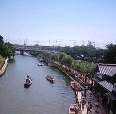 川辺にはたくさんのアヤメの花が咲いていて、錦絵のような風景を見ることができます。船の上から眺める景色も美しく、付近にはお寺もあり日本情緒漂う素敵な場所でした。嫁入り船も見ることができ、一緒にお祝いさせていただきました。
