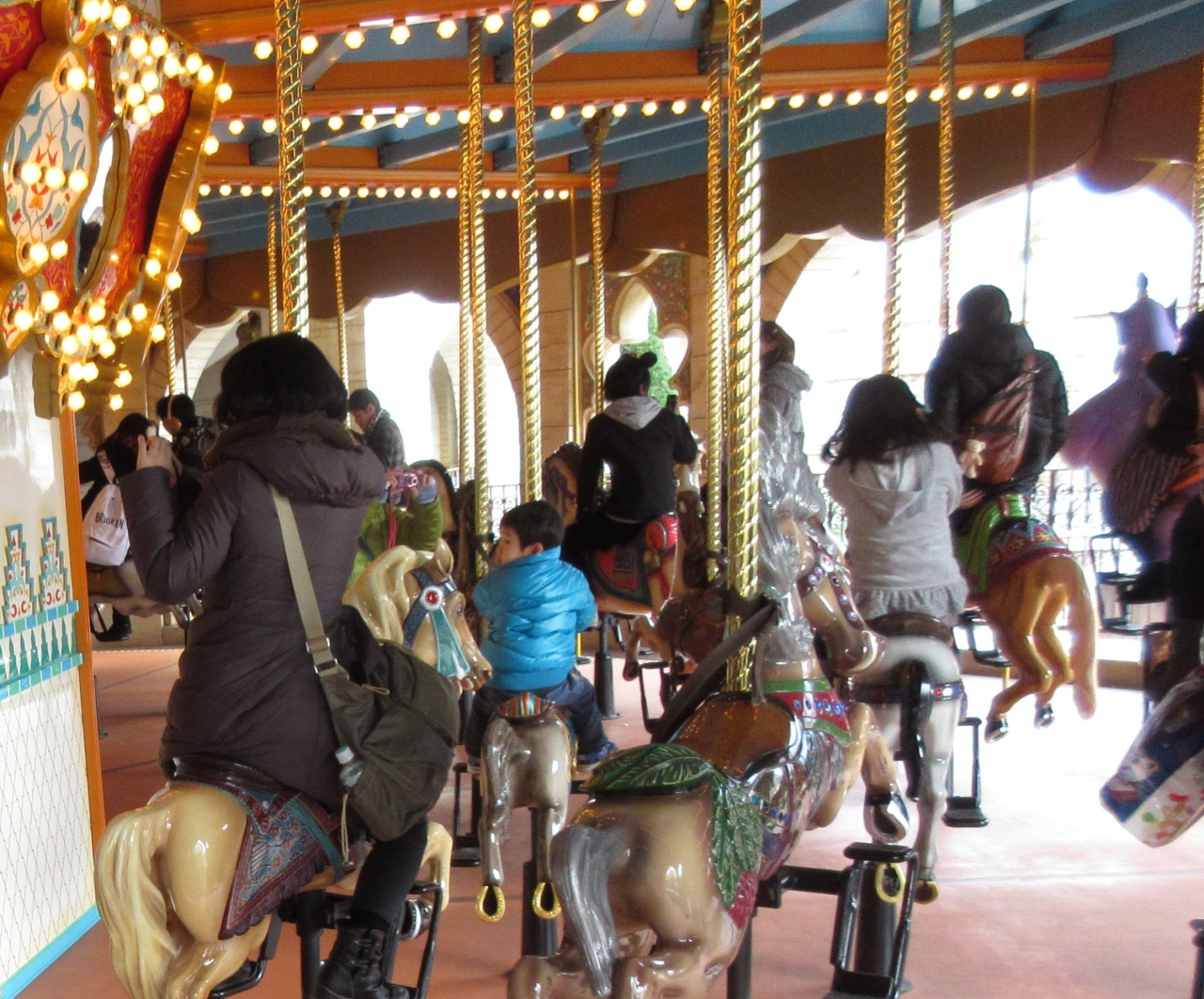 アラビアンコーストにあるメリーゴーランドで、2階建ての豪華なつくりのアトラクションです。1階と2階で見える景色が違うので好きな方を選ぶことができ、ジーニーや馬に乗って、くるくるとまわることができます。音楽もアラビアンテイストで、アラビアンを感じさせる雰囲気のあるメリーゴーランドです。