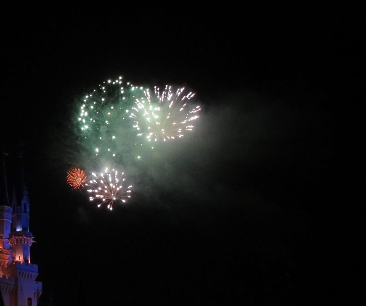 ディズニーの音楽が流れながら、打ちあがる花火はとてもきれいです。ロマンチックな雰囲気で、園内の開けているところなら、だいたいどこからでも見ることができて、帰宅時に歩きながら見ることも多々あります。ミッキー型の花火があがるのも、ディズニーらしくてロマンチックです。