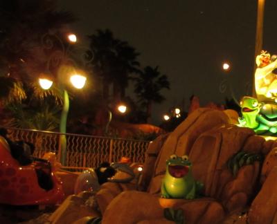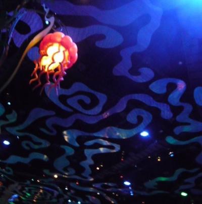 マーメイドラグーンにあるアトラクションで、ブローフィッシュに乗って、高い場所をくるくるとまわります。ほどよい高さの場所をくるくるするので、子供でも大人でも楽しむことができて、景色を楽しみながら空中旅を体験することができます。夜だと比較的空いていて、乗りやすかったです。