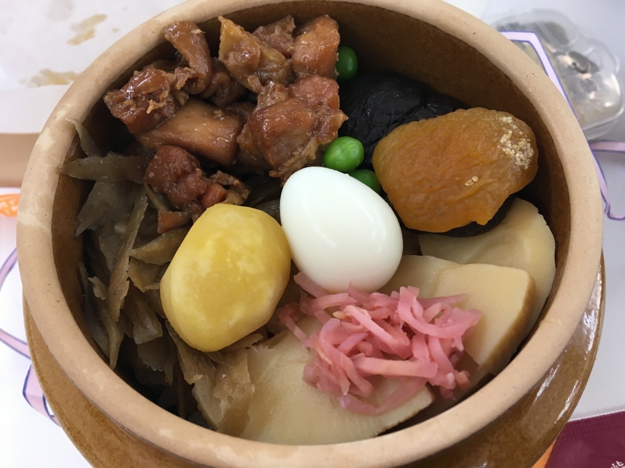 工場で作ったばかりの釜めしが食べられる。ここでは釜めしにもいろんな種類がありました!でもスタンダードなやつ、食べちゃうのよね。