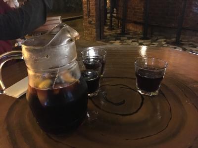 予約せずに行ったので席が空くまでは庭のバーで飲んでいてと案内されました。大きなお店で庭の雰囲気も素敵。サングリアを頼んだら赤ワインとファンタオレンジを混ぜた(目の前のカウンターで作っていた)斬新な飲み物がピッチャーで出てきました。たっぷりあったのでお得だし、いいアイデアだなあ、真似しようと思いました笑。