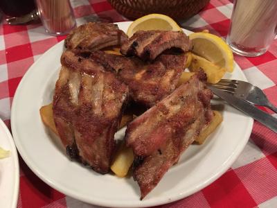 8時過ぎに席が空き、レストラン内へ。段々涼しくなってきたのでちょうど良かったです。値段は安くないけど量が多いので食べ物のコスパはいいです。ワインはセラーから選べます。メニューには写真が付いているし、英語もよく通じるから注文しやすいです。