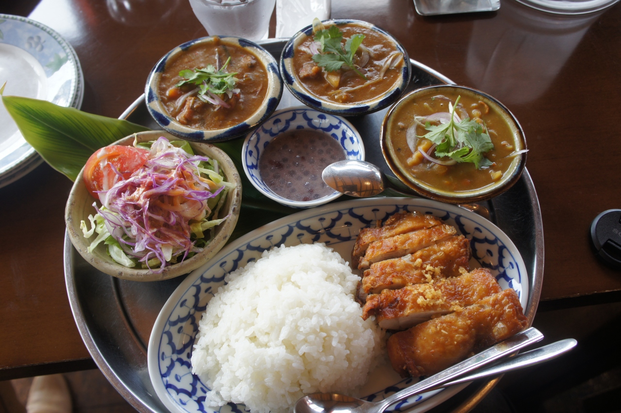 カレーのセットを頼むと、辛さがそれぞれの3種類のミニカレーと、