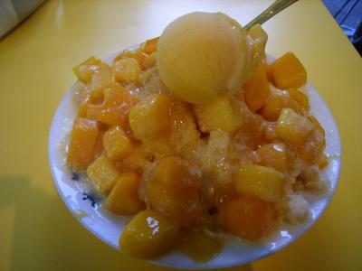 ちょっと並んでマンゴーかき氷を購入。