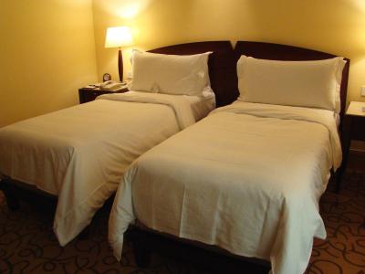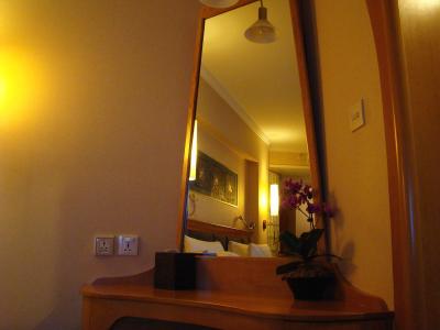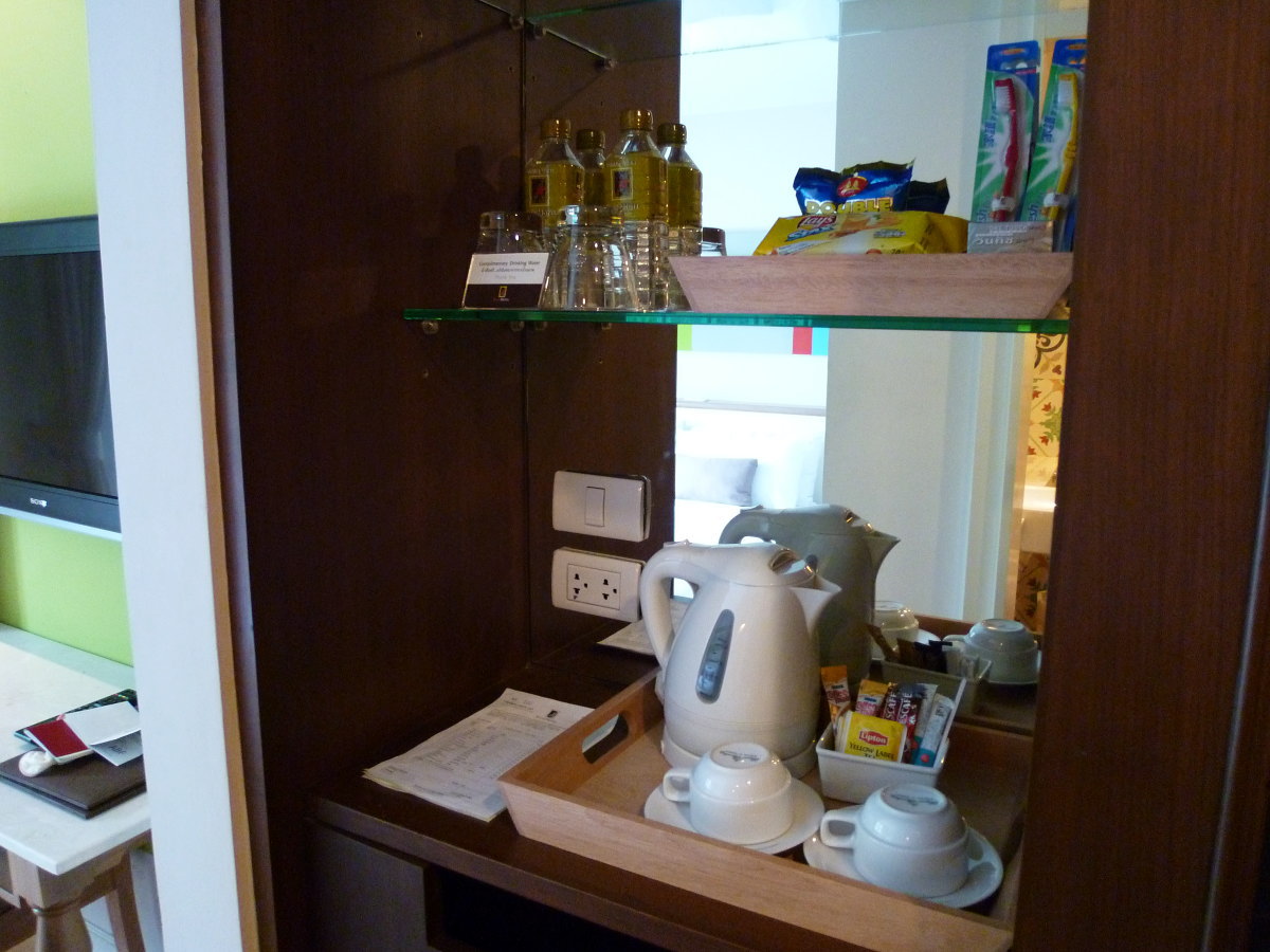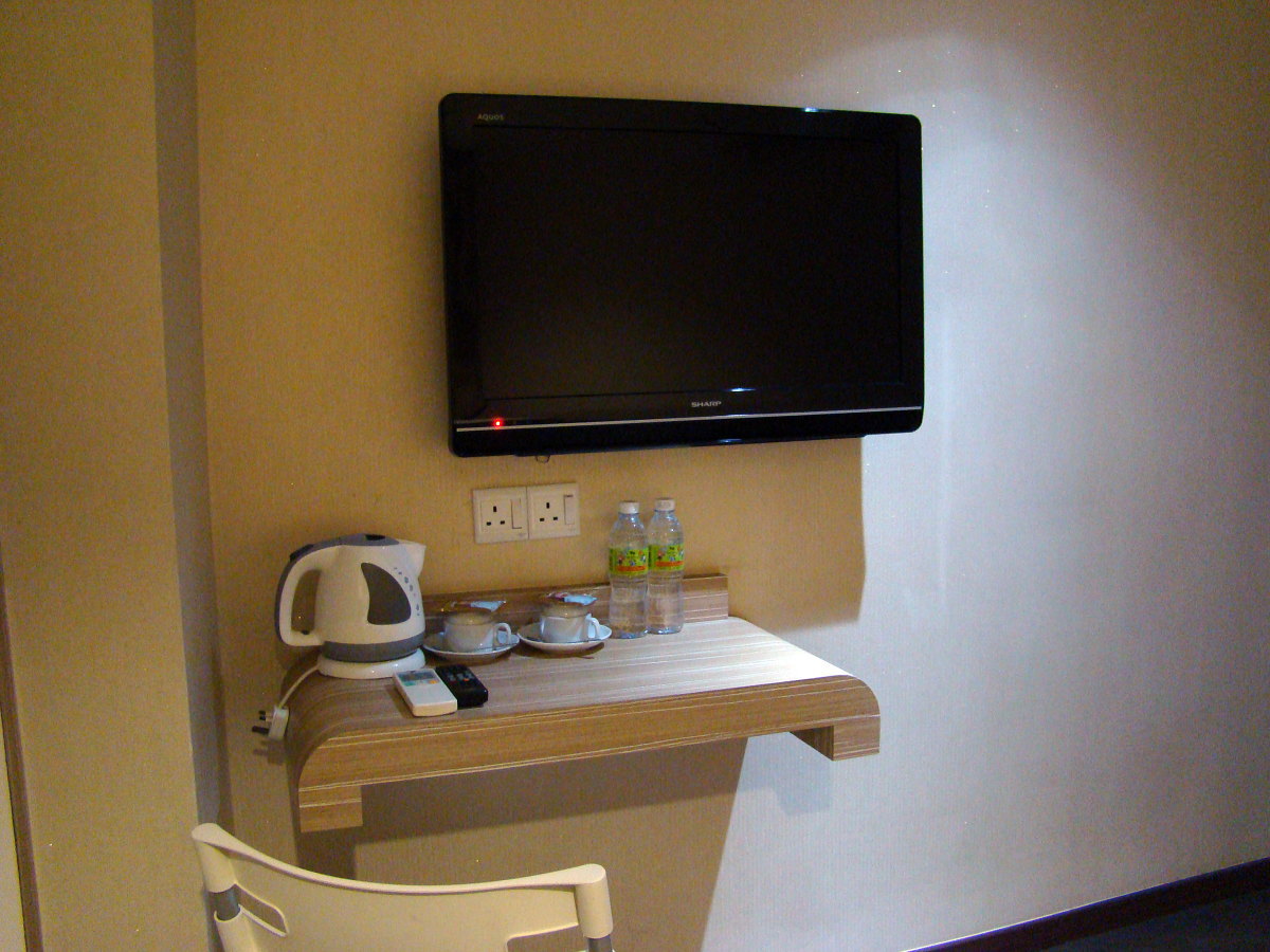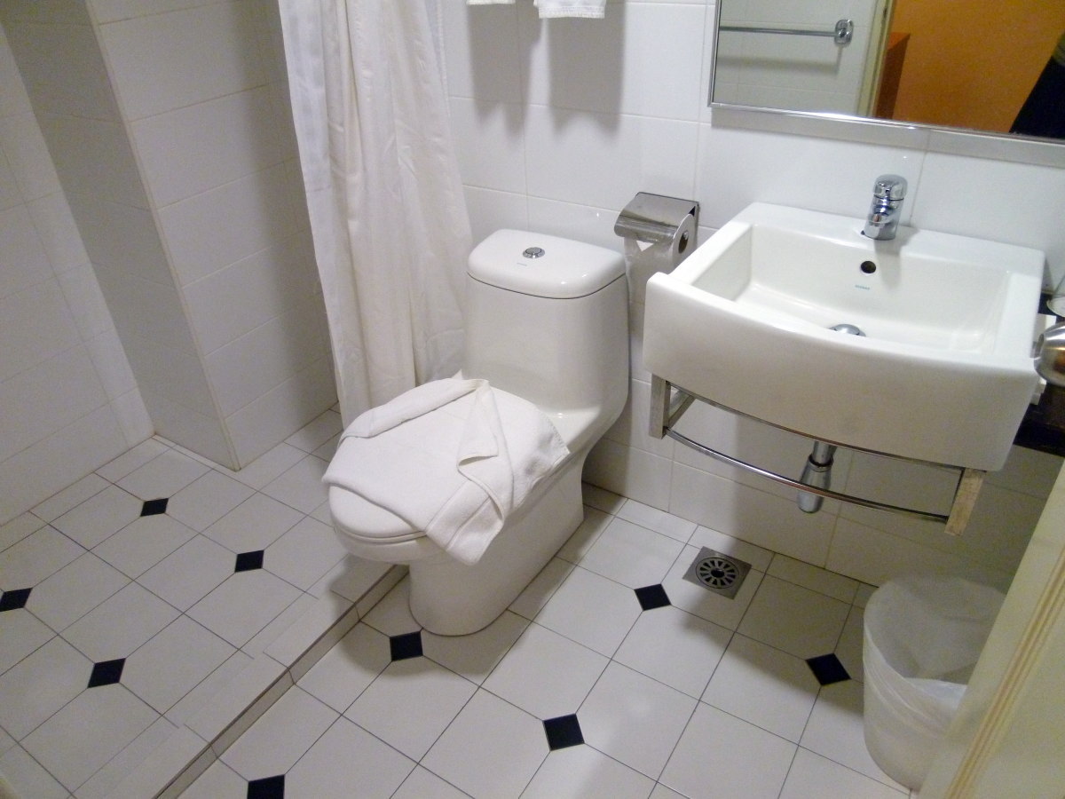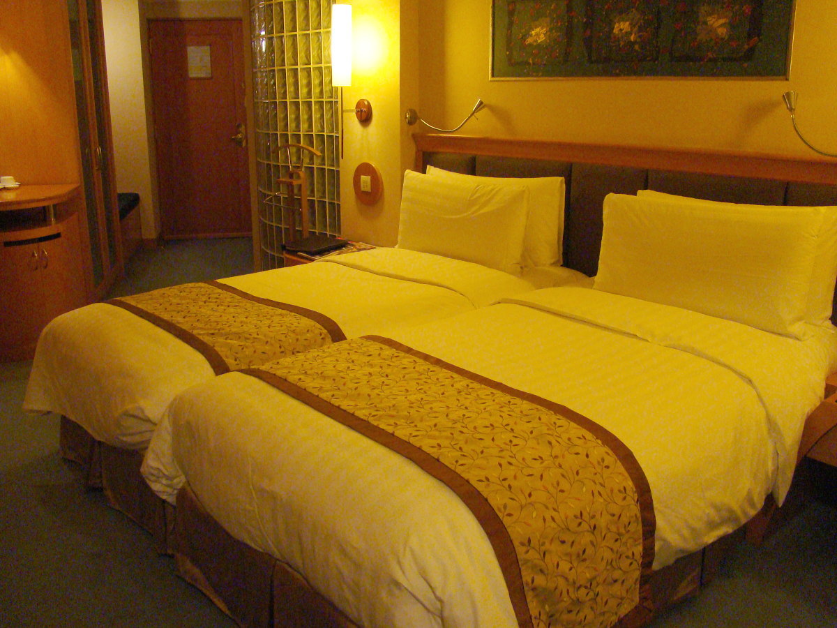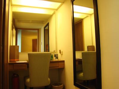 女性好みの可愛らしい内装で、フローリングの床は清潔感アリ。ただ非常に狭く、トランクを開けるのに苦労しました。テレビはNHKが映りました(どうでもいい余談だけど、部屋の電化製品の全てが日本のメーカーだった。最近のホテルでは珍しい気がする)。