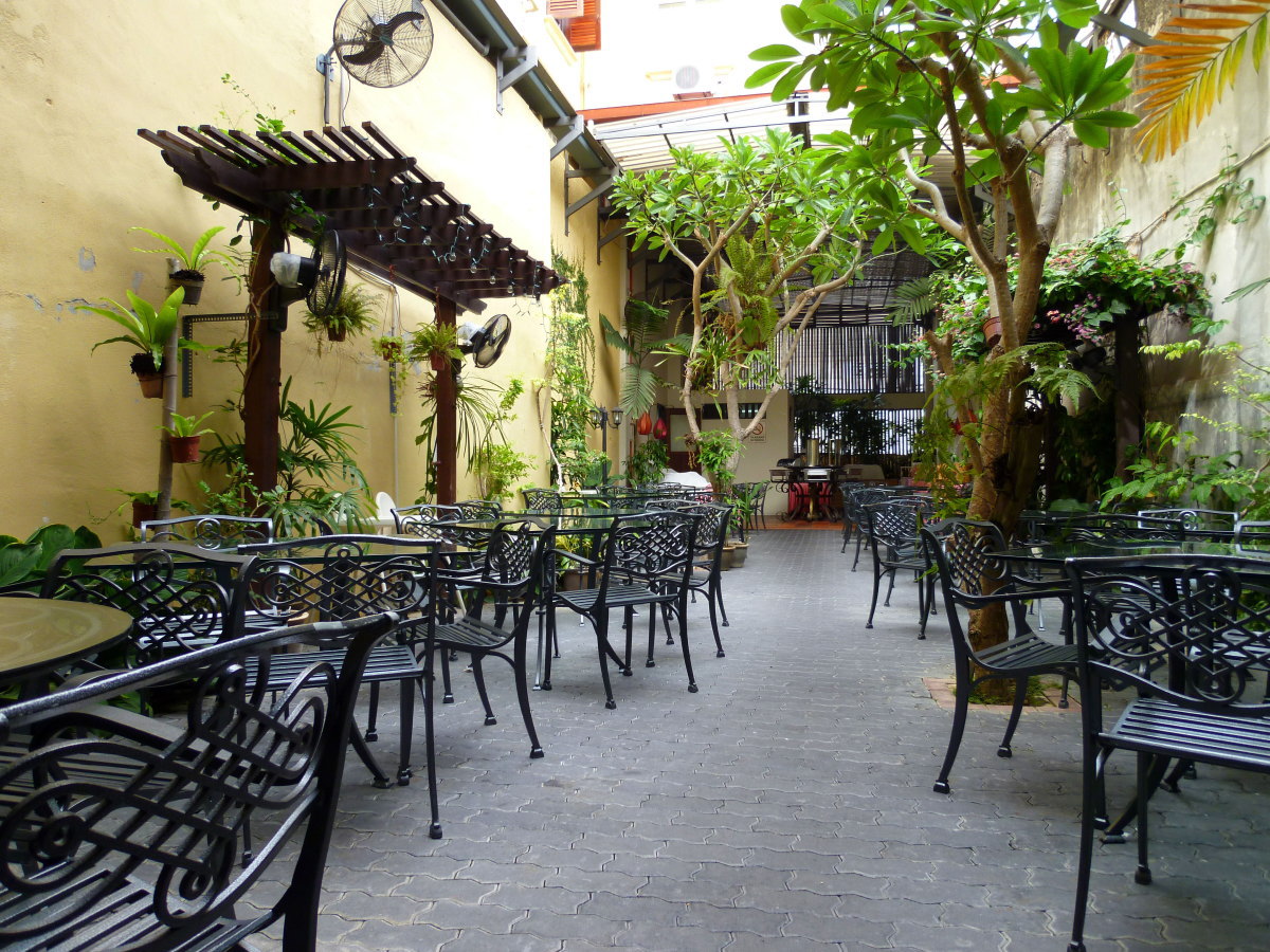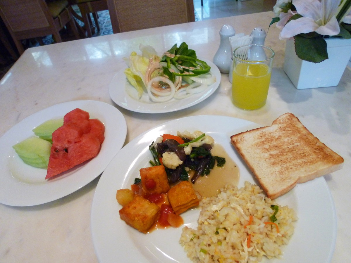 中庭でいただきます。洋食と簡単なマレーシア料理があり、種類は多くないものの満足でした。食後しばらくは席で読書をしていましたが、追い立てられることもなく快適でした。