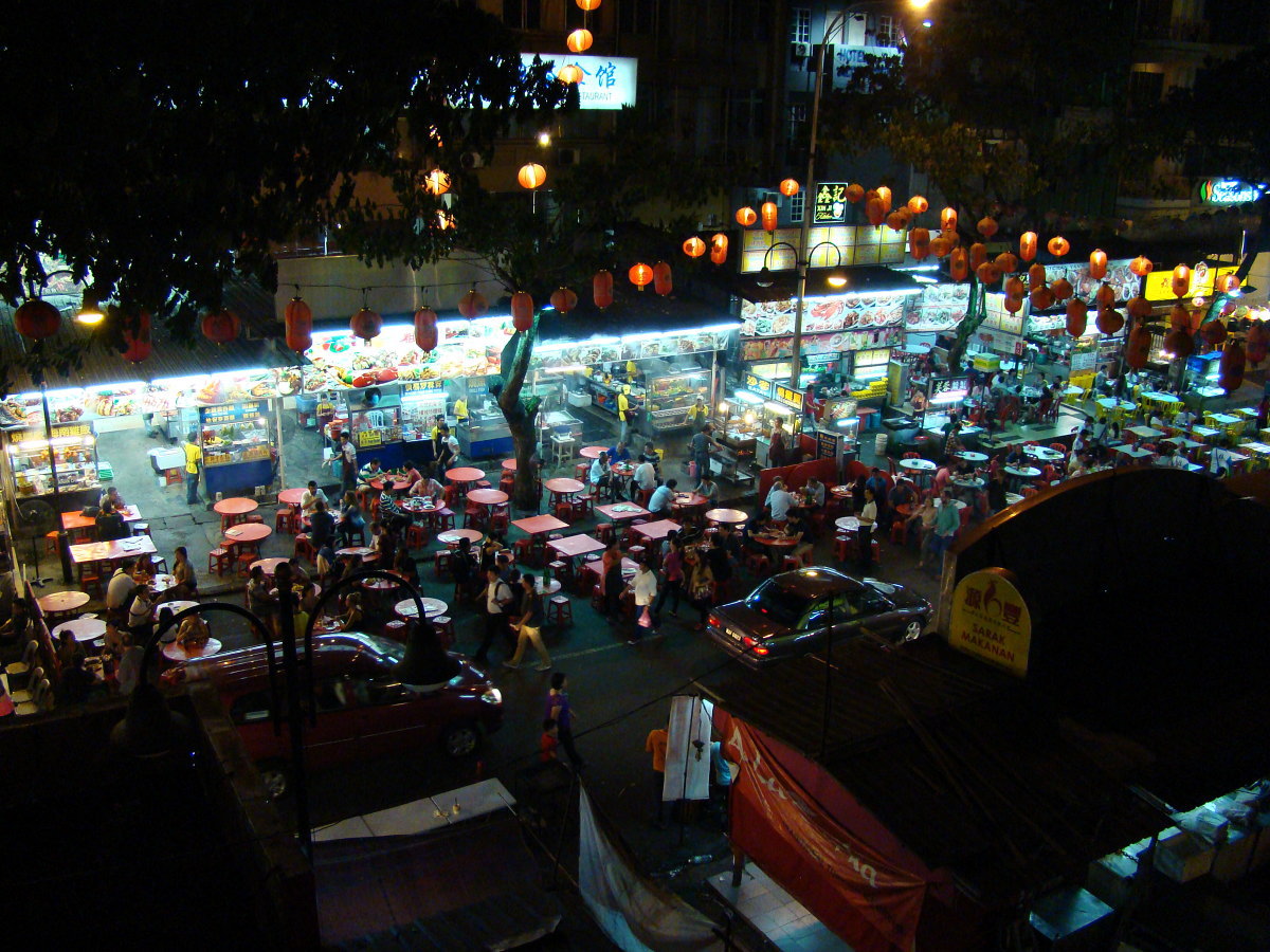 ジャランアローの角です。女ひとりで12時過ぎまで出歩きましたが、ある意味全く危なくない感じです。KLモノレールのブギ・ビンタン駅までは徒歩10分程度。