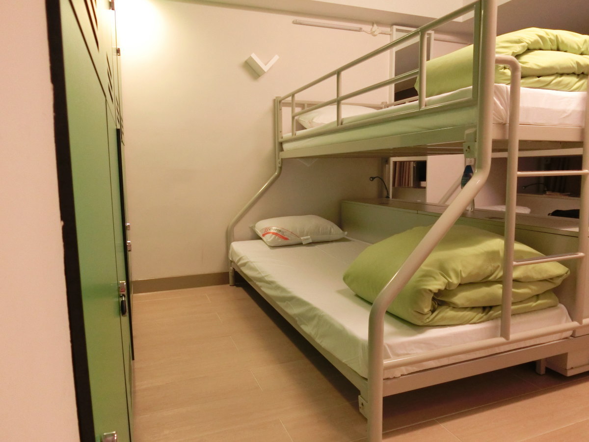 3段ベッドで場所は指定、一番上が振り当てられた人は大変そうだった。ロッカーはルームキーと同じ電子式。掃除も毎日入っていた。