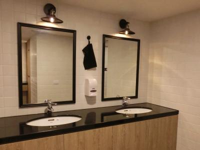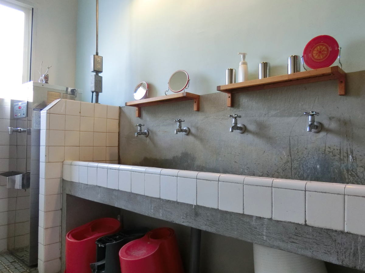シャワーの台数は多め。洗面台の鏡が大きいので何をするにも便利でした。