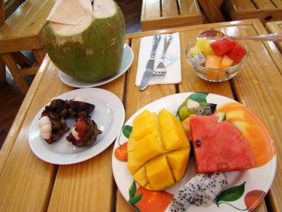 バイヨークスカイ名物のフルーツビュッフェは宿泊者割引があり、はっきりした数字は覚えていませんが、日本円で500円強でした。お得かどうかは微妙なところですが、並んでいたフルーツは熟れていてどれも美味しかったし、日本ではあまりできない体験ですのでフルーツ好きにはオススメです。