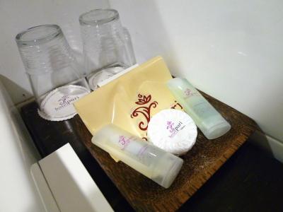 ・アメニティ:必要最低限。シャンプー類は壁に備え付けのもので、ロビー前の