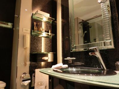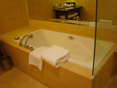 こちらも無駄に広い。バスタブとシャワーブースがそれぞれ遠い場所にある。お湯と水圧はOK