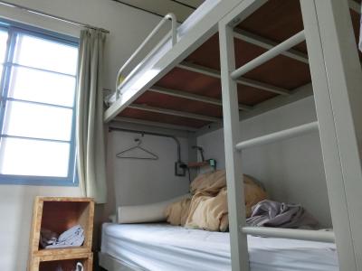 2段ベッドとシングルベッドがあり、指定は無し。枕元に個人用のスタンドとコンセントがあって便利です。 部屋にロッカーはありませんでした。
