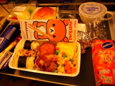 旦那の機内食。この後、無事に日本の地を踏めて一安心です。子供たちの体調...