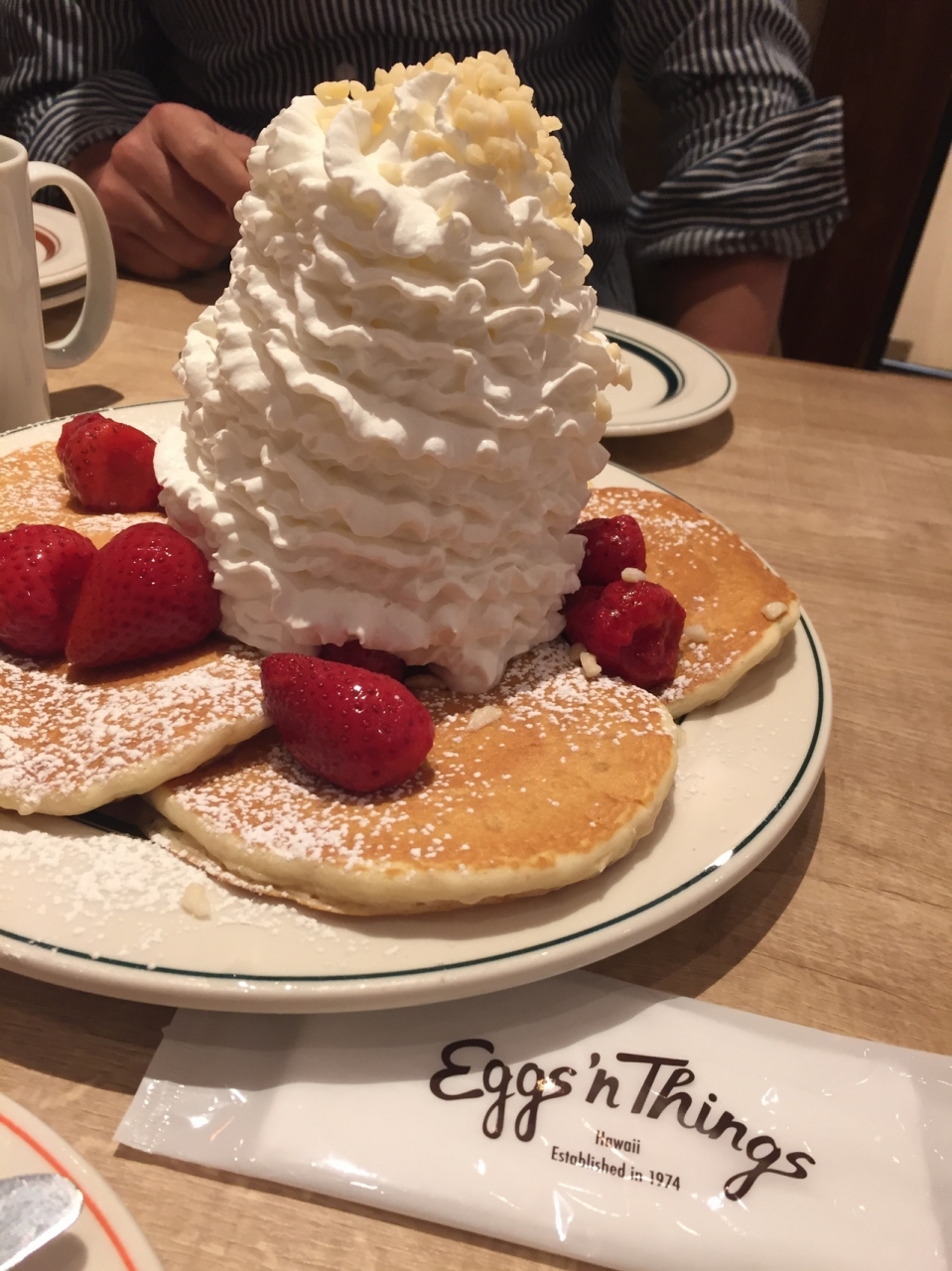 パンケーキブームも一段落したかなと思い行ってみました。看板メニューであるイチゴのパンケーキをオーダー。特に甘党ではないですが、クリームは意外と軽くてパクパク食べられました。2人でシェアでちょうどいいかも。コーヒーは苦くて好みでした。お昼は大行列でした…
