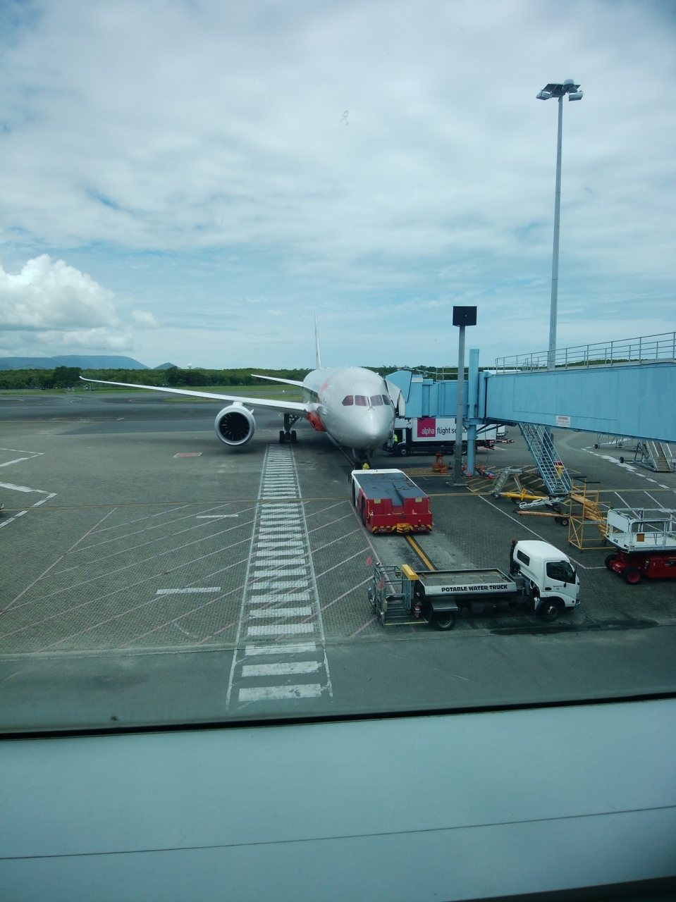 大阪からも、成田からも直行便があるのはとても便利で、Jetstarセールに合わせて購入できたので、預け荷物などのオプションを含めても、7万円ぐらいと、金額はかなりおさえられました。ただ、Lccなのでオプションを殆どつけなかったのでもちろん機内食や、アメニティもないので、基本全て持ち込みました。ペットボトルなどの液体物は仕方ないので飛行機乗る前に空港内で調達しましたが、ちょっとした軽食のパンや、ビスケットなどはスーパーで購入しておき持ち込みました。タオルはもともとビーチタオルを持って行くつもりだったので、それを圧縮して機内へ。イヤホンのみ無料でついており、機内のエンターテイメントなども、映画1本$8ぐらいしました。また機内は全てカード決済です。