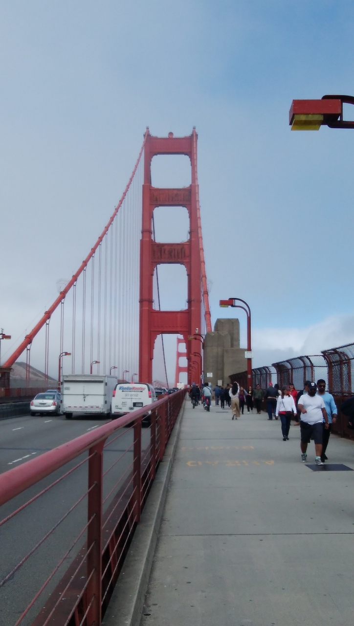 歩いて渡ることもできるが、橋の上は相当な強風だし、結構キツイ。