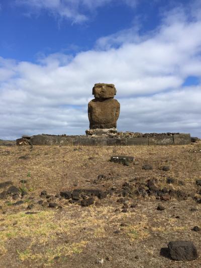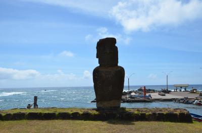 アケアナビーチの中にあるモアイのひとつ。ずんぐりむっくりなところがとてもかわいいです。初期のころに作られたモアイは、このようにずんぐりになっているようです。近くにいるアフ・ナウナウと比較してみると面白いと思います。